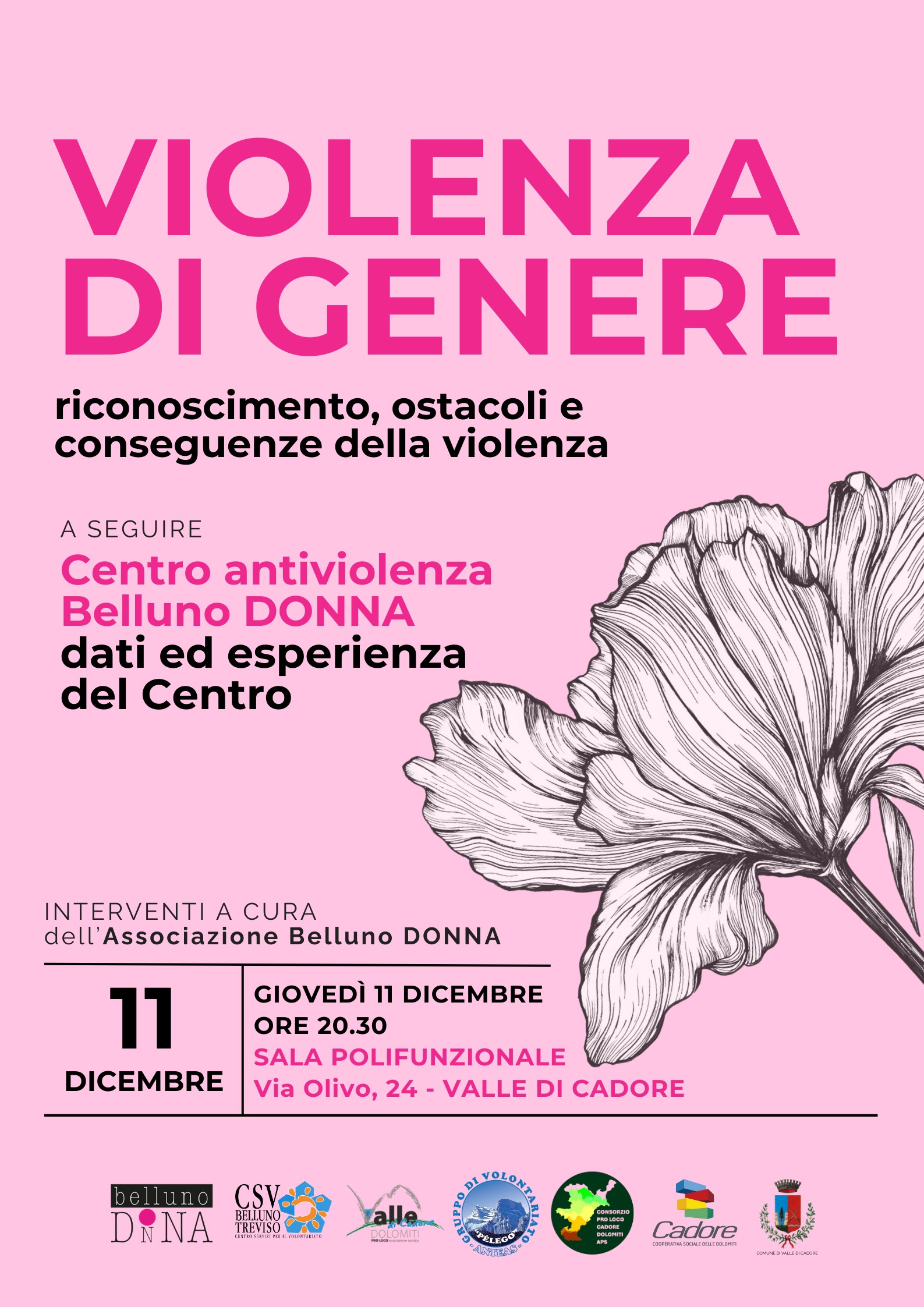 Incontro pubblico a ingresso libero sul tema “Violenza di genere: riconoscimento, ostacoli e conseguenze della violenza“. Con la partecipazione di Belluno-Donna che riporterà dati ed esperienza.