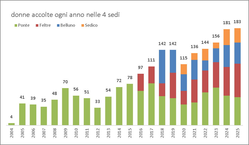 Sono online i dati statistici sulle attività svolte dall’Associazione Belluno-Donna nel periodo 2004 (anno di apertura) al 31 dicembre 2025. Li trovate a partire dalla nostra home page (in alto a destra “Dati statistici”) o cliccando qui: https://www.bellunodonna.it/dati-statistici/ Queste statistiche sono fondamentali per comprendere la situazione sul nostro territorio.